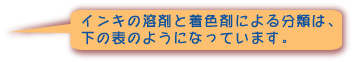 インキは溶剤により水性インキと油性インキの2つに分かれます。