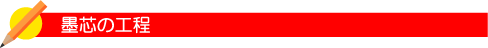 次に下の面を削って1本1本切り離します。ここではじめて鉛筆の形状になります。これを「生軸(きじく)の鉛筆」と言います。 |