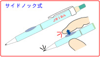 軸のサイドにノックボタンがあり、このノックボタンを押して芯を出す形式のものです。 |